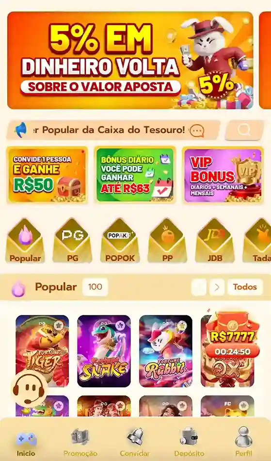 Uma das promoções mais populares é o Bônus Diário de até R$63. Basta fazer o login diário através do app para reivindicar sua recompensa. Além disso, novos usuários que realizam o primeiro depósito via aplicativo frequentemente recebem porcentagens maiores de cashback ou rodadas grátis em slots selecionados, como o Fortune Tiger.